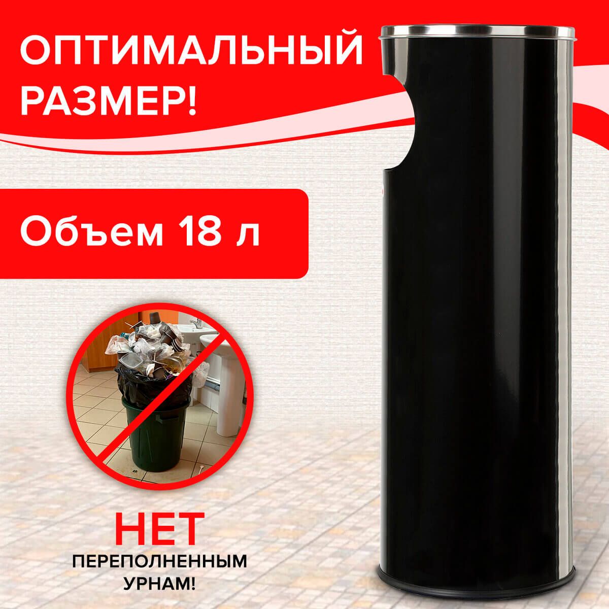 Урна с пепельницей 18 литров, нержавеющая сталь, черная, LAIMA PROFESSIONAL в Салавате